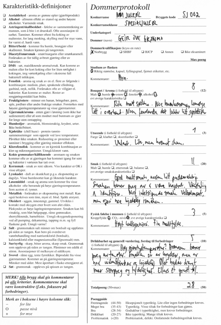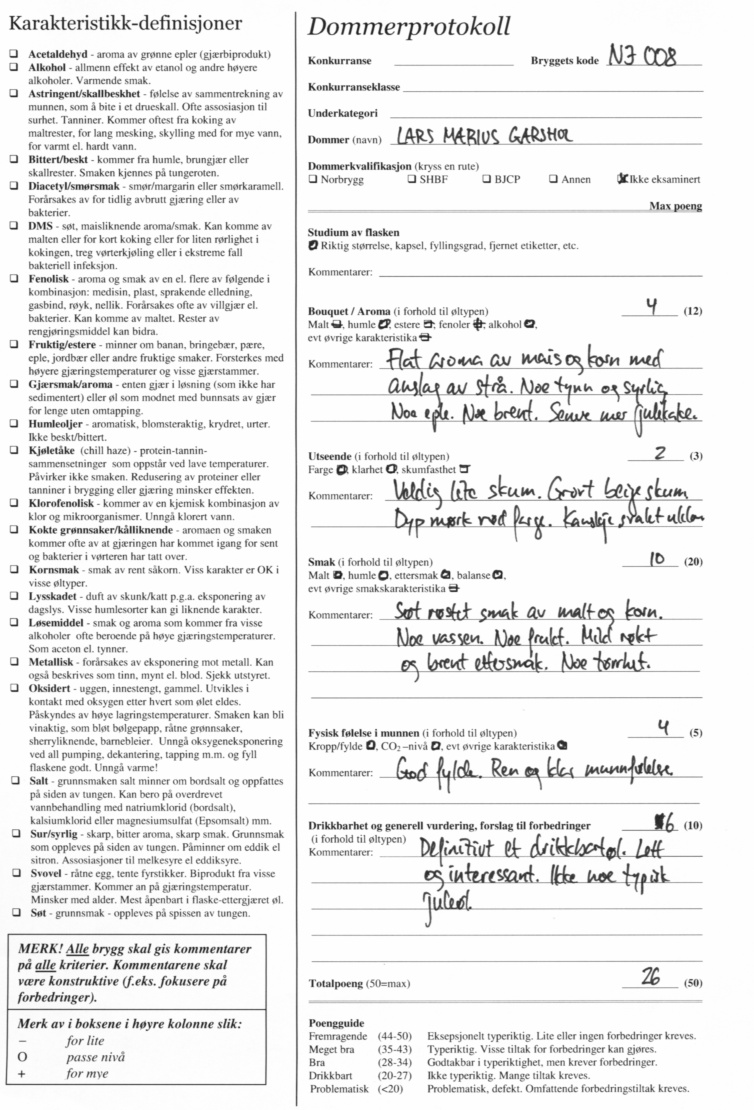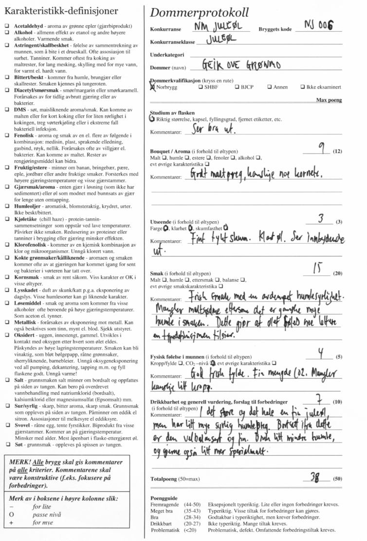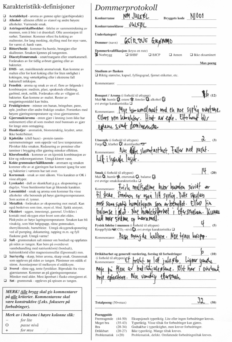I siste styremøte er styret kommet frem til at dommerskjemaene likevel skulle offentliggjøres, i likhet med tidligere konkurranser i regi av Norbrygg. Her er dommerskjemaene:
