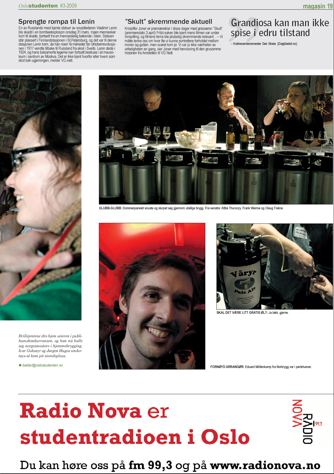 Evaluering av innsendt øl utenfor konkurranser