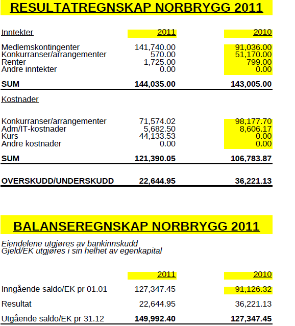 Balanse og resultat 2011