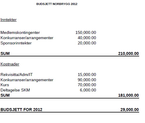 Budsjett for 2012