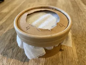 - Legg en lukt i koppen, ta på et dobbelt lag gasbind og fest lokket.