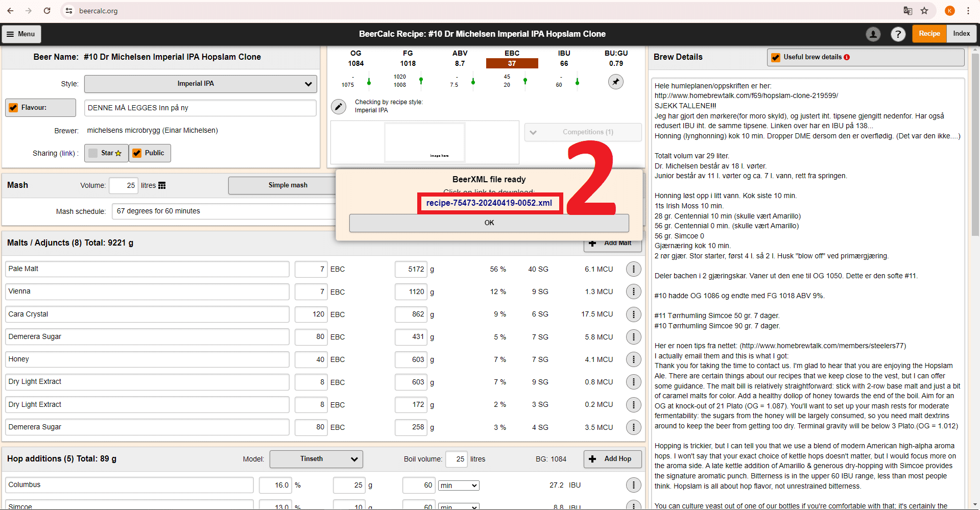 Del med lenke til oppskriften dersom det er mulig. Send gjerne vedlagt XML-fil i tillegg, da det går raskere å importere til Brewfather enn å måtte punche inn oppskriften manuelt fra PDF-/tekstformat.