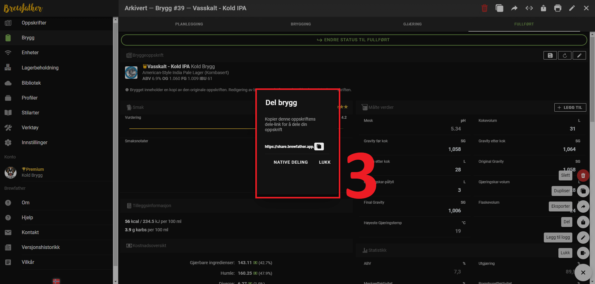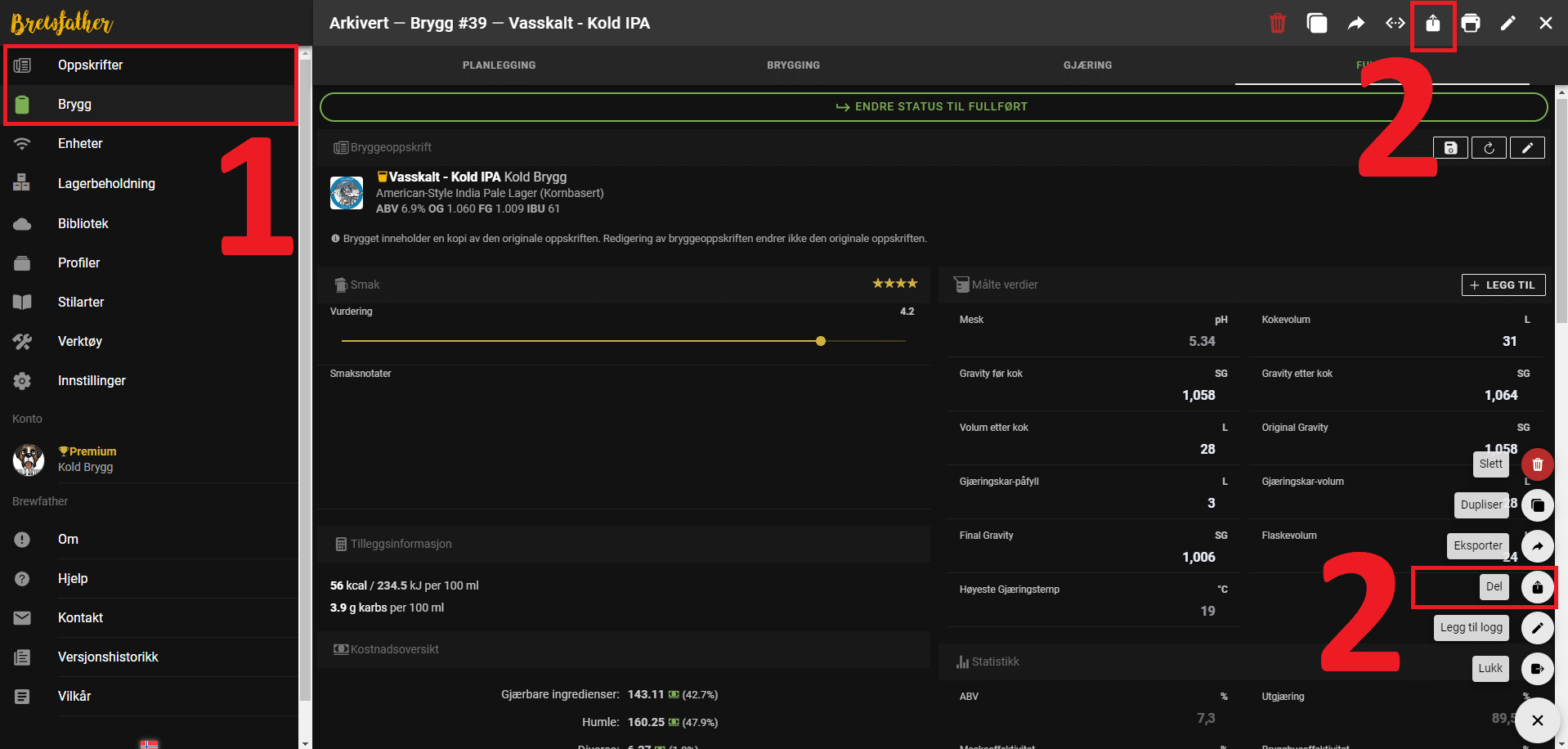 Du kan dele oppskriften din med Norbrygg enten via bryggeprogramvaren Brewfather, via delingsfunksjoner i annen bryggeprogramvare eller ved å sende den som vedlegg på epost.