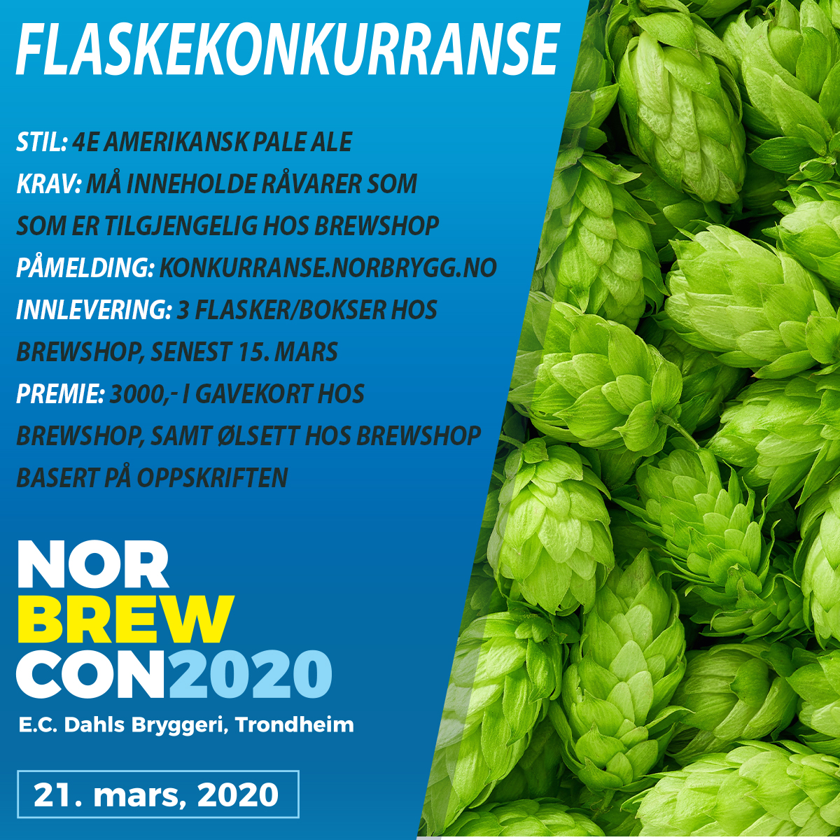 NorBrew Con 2020 arrangeres av Norbrygg Trøndelag (del av Norbrygg, Norsk Hjemmebryggerforening) og bryggebutikken Brewshop.