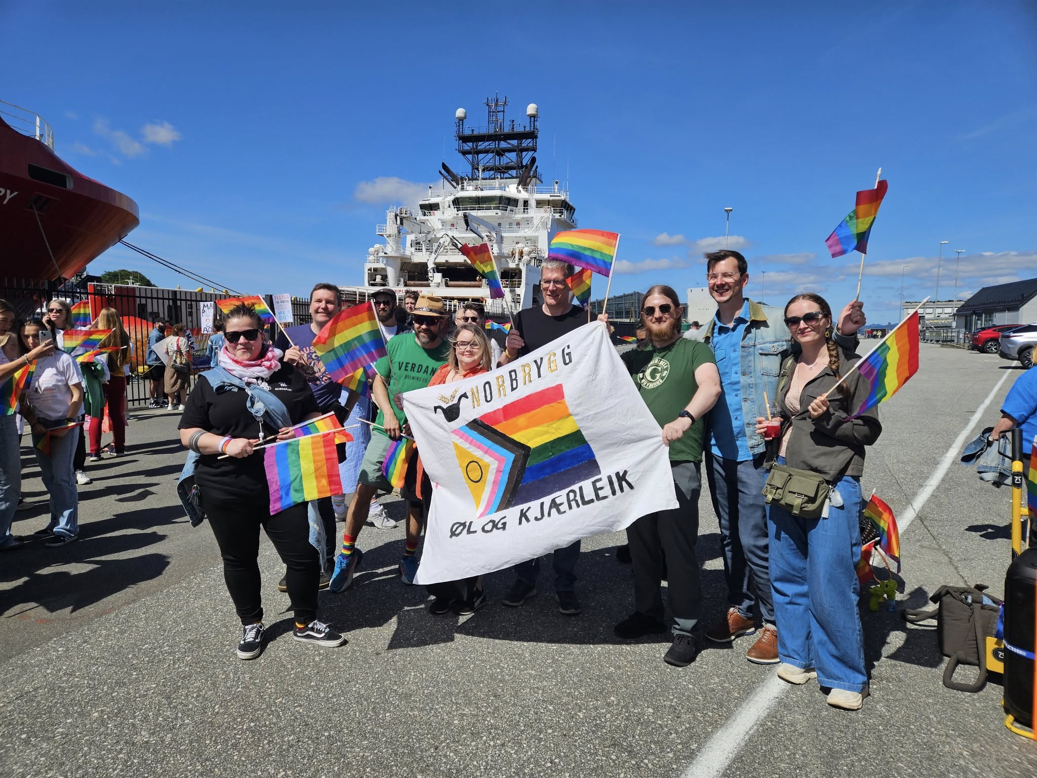 Over: Tidligere samme dag gikk Norbrygg Hordaland i Bergen Pride med egen parole – «Øl og kjærleik» – for i Norbrygg skal alle føle seg velkommen.