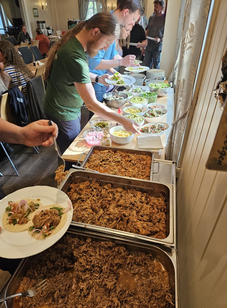 Under: Som vanlig ble det servert god mat. I år var det taco i ulike varianter som sto på menyen, basert på langtidsstekt svinenakke.